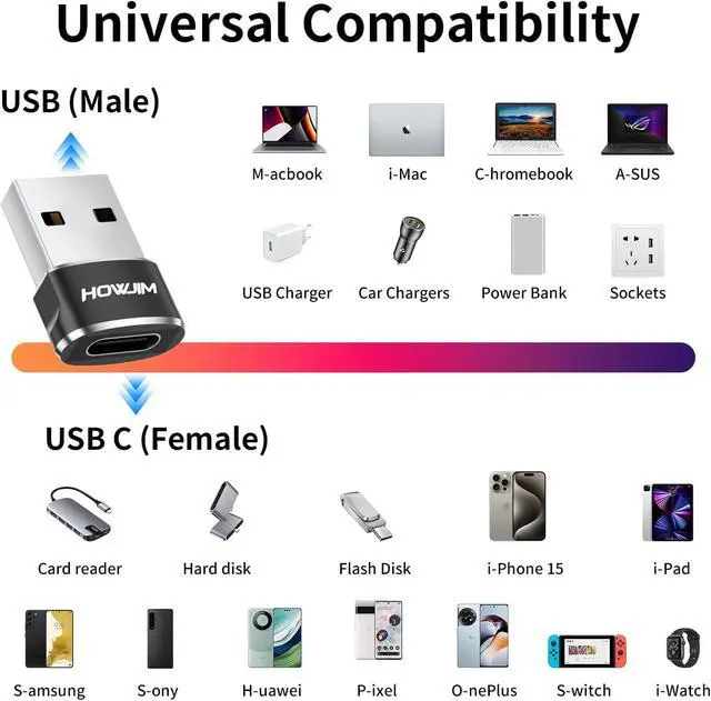 USB devicesLightweight Durable: USB A to USB C adapter fits easily in your pocket or backpack. Aluminum alloy housing material 10 000+ times plug and play test. 56k resistor protects the device from short-circuit overcharge and overheating risks during chargingWide CompatibilityThis USB C to USB A Adapter is the hottest USB Type-C Conversion Adapter for M-acBook Pad Pro Windows M-ac OS Phone Series G alaxy H uawei P ixel O nePlus X peria S urface X iaomi O PPO Vi Vo and other Type-C compatible devices