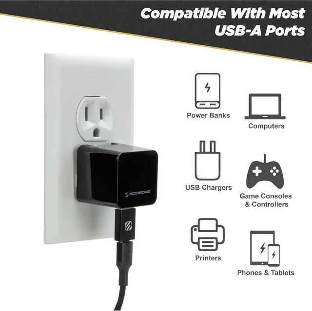 Scosche ACA-2PKSP Strikeline USB Type-C to USB Type-A Adapter 2 Pack - Black