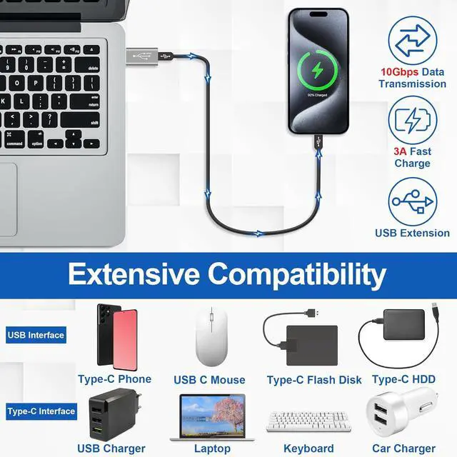 Premium Materials: The USB A to USB C extend connector adopts a high-quality aluminum shell which has strong oxidation resistance and heat dissipation ability providing excellent texture. Adopting a compact design it is very convenient to carry in a bag during travel and business trips.