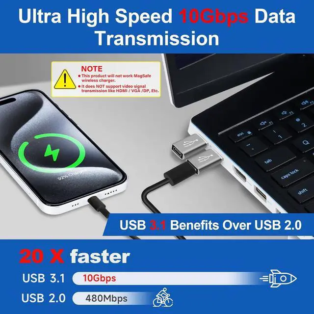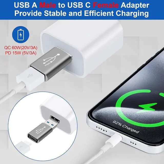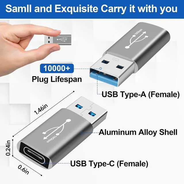 Charging: The USB A to USB C adapter provides a data transfer speed of up to 10Gbps and supports a maximum power output of 5V/3A allowing for fast charging and data transfer. The transfer speed of this USB C adapter is 20 times faster than USB 2.0 (480Mbps). Transferring data only takes a few seconds.