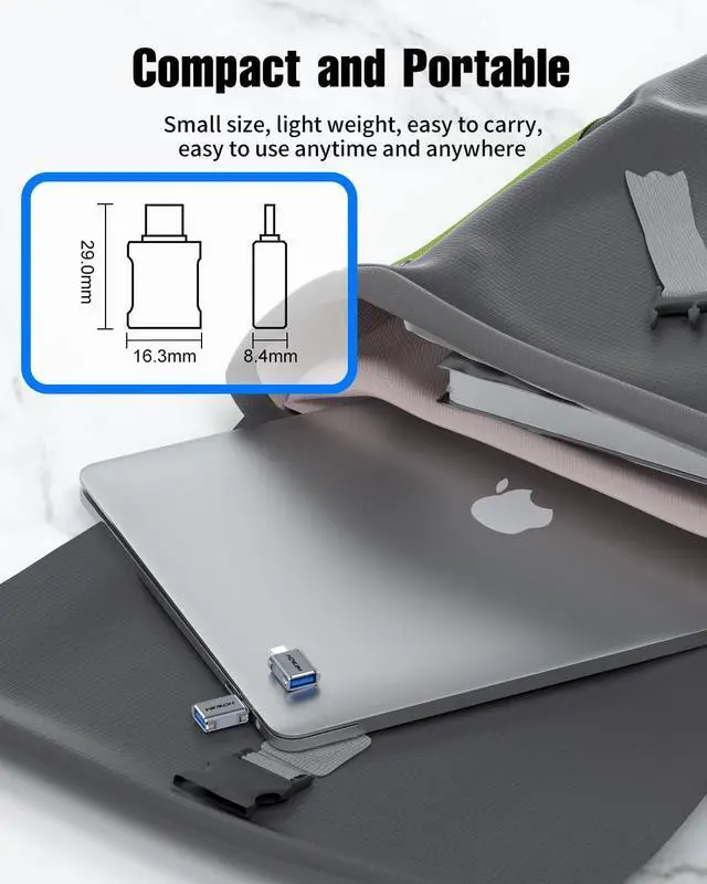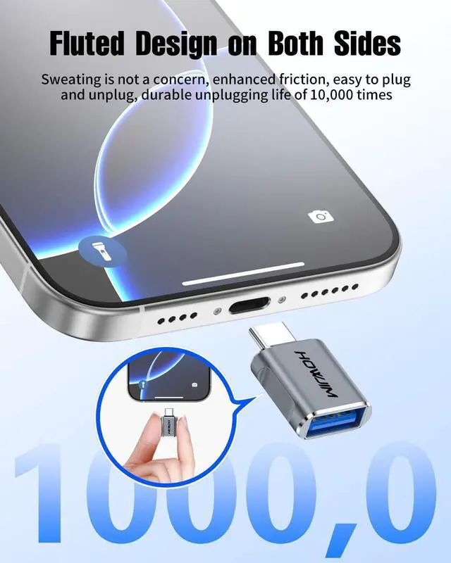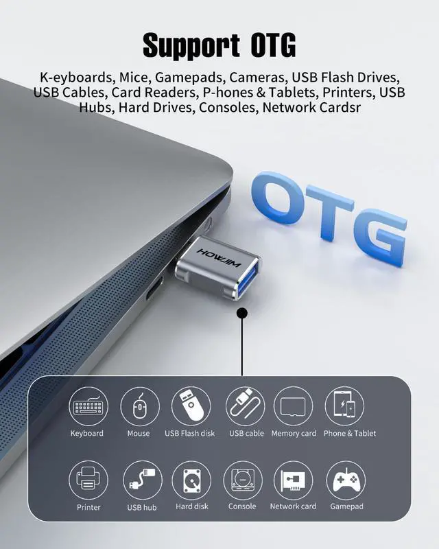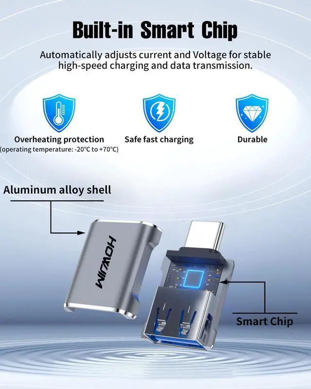Please note: Video signal transmission is not supported. Smart ChipThis usb a to usb c adapter features a built-in smart chip that automatically adjusts current and voltage to ensure stable and efficient charging. It incorporates overheat protection and operates within a wide temperature range (-20°C to +70°C). The aluminum alloy casing provides excellent heat dissipation ensuring safety durability and protection for your devices. Please ensure use within the specified current range to guarantee charging safety. Anti-Slip Groove DesignThis type c to usb adapter features anti-slip grooves on both sides for a comfortable grip and effortless insertion/removal while effectively preventing slippage from sweaty hands. Tested for up to 10 000 insertion cycles it delivers long-lasting durability. Wide CompatibilityThis Type-C Male to USB 3.2 Female adapter compatible with i-Phone 17/16/15 series i-Pad M-acBook Pro/Air L-enovo D-ell XPS S-amsung Note-book N-intendo S-witch and more Type-C devices. Supports USB peripherals including keyboards mice cameras flash drives and printers. Measuring just 29.0 mm x 16.3 mm x 8.4 mm it's compact and portable for plug-and-play convenience anytime anywhere.
