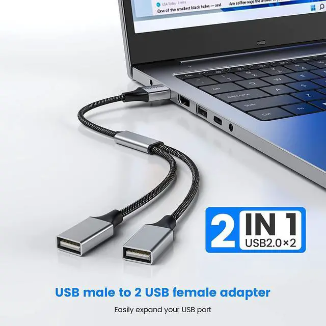 USB Expansion: This usb y splitter can transform one of your computers USB ports into two with this USB hub. Offers data transfer speeds of up to 480 Mbps and also supports up to 1.5 Amps of power output.