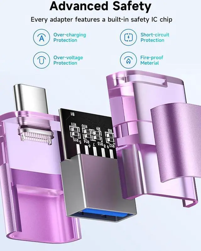 Transparent DesignJSAUX usb c to usb adapter 3.0 features a transparent casing stylish and cool. The transparent casing is made of high-quality PVC material featuring safety insulation heat resistance and fireproof properties. CompatibilityJSAUX usb to type c adapter compatible with all usb c devices. Such as compatible with usb c port MacBook Pro/Air iPad Pro/Air iPhone 15 Pro Max/15 Plus/15 Galaxy S24/S23/S22/S21What you getYou can get 3 usb to usb c adapters 3.0 and 18 Months Warranty. One for the home one for the office and one for car. If you have any problem please contact us.