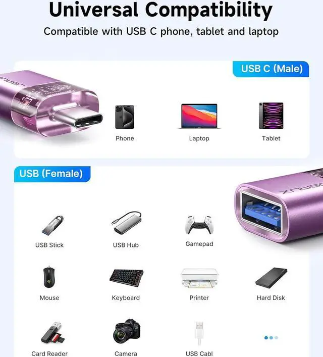 Removable USB PortMore and mroe device only support usb c ports. But people still have many devices with usb ports. JSAUX usb c to usb adapter can help you solve this problem. It support data transfer you can listen to music watch movies ead documents and books. With this adapter you essentially have a portable USB port. USB 3.0 Super Speed TransferFull USB 3.0 super speed data transfer up to 5Gbps 10x faster than USB 2.0. Transfer files HD movies and songs to your usb c devices in seconds. Plug in and use computer peripherals such as usb flash drive keyboard hub mouse and more makes your usb c devices compatible with usb drives.