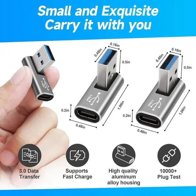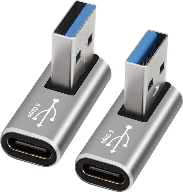 90 Degree USB to USB C Adapter 2 Pack Middle Left and Right Angle USB C Female to A Male Charger Connector Converter USB L Shape Extender Support Charge & Data Sync for PC Laptop Mouse Keyboard