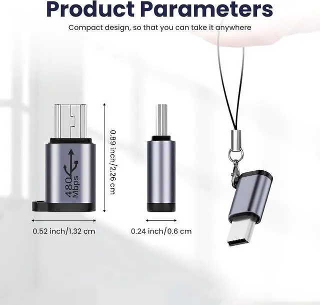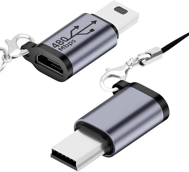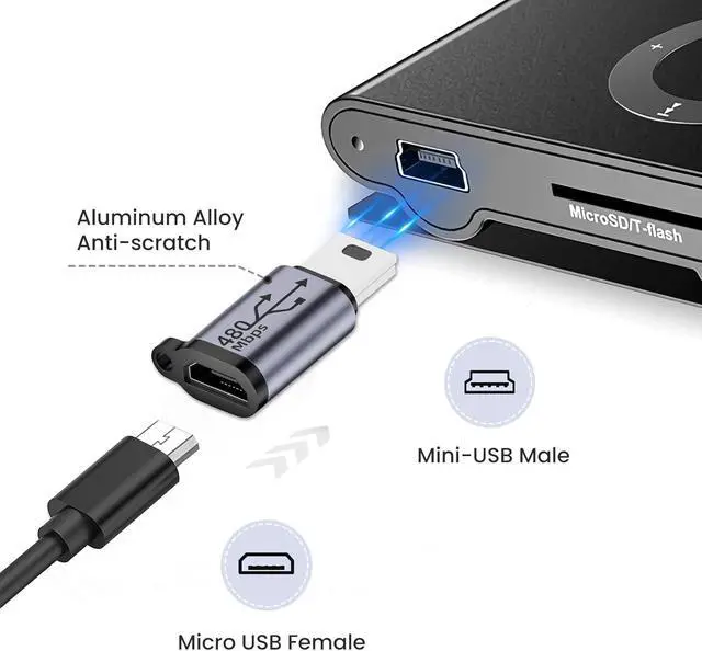 ? Mini USB to Micro USB AdapterIt supports data transfer and charging allowing you to easily connect Micro USB peripherals to your mini USB devices.? Reliable and EfficientBuilt-in 56K resistor ensures safe operation and data transfer rate up to 480 Mbps.? Plug and PlayNo need to install any driver to charge/transfer data to your device. Micro USB adapter is equipped with a lanyard for you to carry around? Universal CompatibilityMicro USB Female Adapter is compatible with Hero 3+ PS3 Controller MP3 Player Digital Cameras Satellite Navigation GPS Dash Cam etc.? Important Note1.