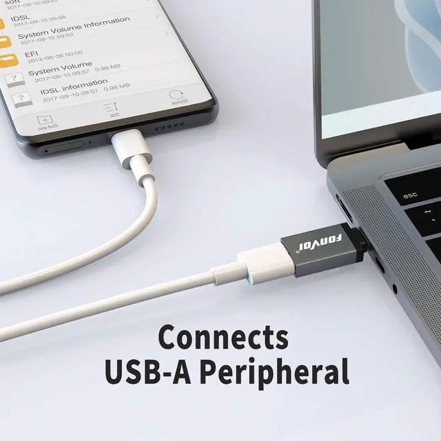 [SuperSpeed Data Transfer]: The USB Type C Male to USB 3.0 Female adapter supports high-speed data transfer rates of up to 5Gbps. With this adapter you can quickly transfer large files videos and photos between your USB-C devices and USB 3.0 peripherals. It enhances productivity by reducing waiting times during file transfers. [Widely compatible]This USB C to USB adapter is compatible with ANY lalptop / tablet / smartphone with a USB Type-C port. Plug in and use computer peripherals such as flash drive keyboard hub mouse and more makes your USB-C devices compatible with USB drives and any other USB devices that support USB On-The-Go.