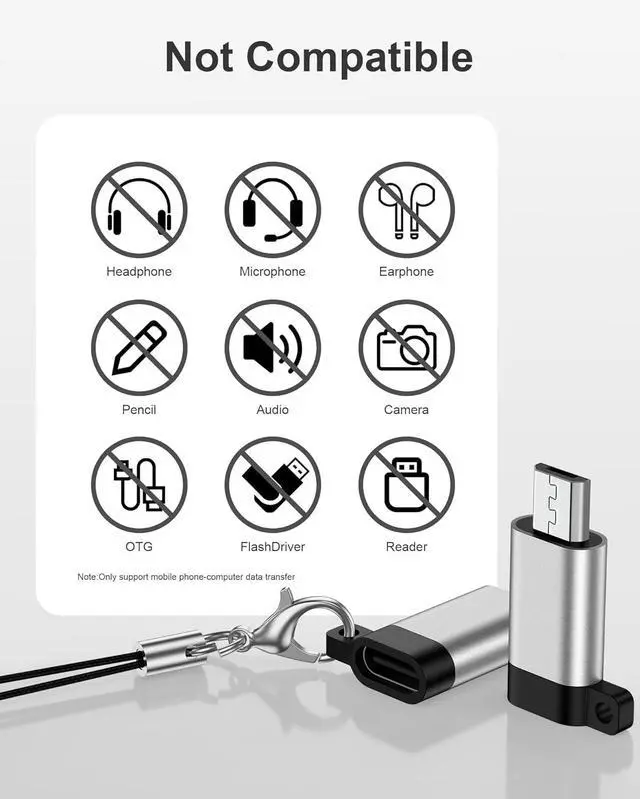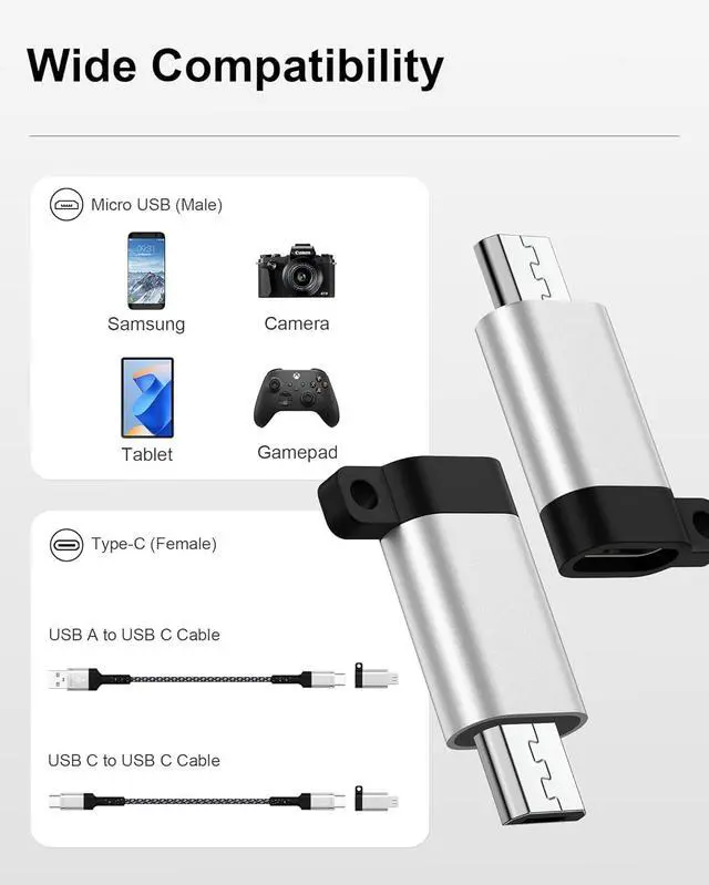 [Secure & Portable Design] This micro usb to usb c adapter with an anti-loss lanyard making it easy to carry and preventing misplacement. Compact and travel-friendly this adapter ensures you always have a reliable charging and syncing solution wherever you go. [Universal Compatibility] USB C to usb micro adapter fully compatible with popular Micro USB devices including Galaxy S7/S7 Edge/S6/Note 5 LG G4/G3 Nexus 5/6 HTC One A9 Sony Xperia Kindle PS4 controllers Bluetooth headphones and more. Ideal for keeping micro usb devices powered up with your USB C cables. (!!!!!! This micro usb adapter not compatible with USB C devices)[Value 2-Pack for Everyday Use] Get two micro usb to usb c adapter in one packkeep one at home and one in your bag or share with a friend.