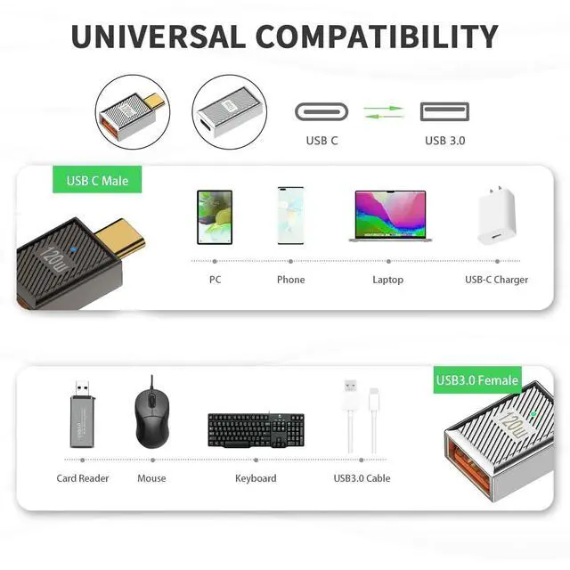 (Note: That the charge speed also depends on the charger and devices USB support Quick Charging or not. )10Gbps Data Transferthis USB C to USB adapter can support data transfer up to 10Gb/s and meet the USB 3.1 GEN 1 standard up to 10Gbps 20x faster than USB 2.0. High Quality zinc alloy shellThe usb type c to usb a adapter features a sturdy zinc alloy shell that prevents scratches and anti slip design USB to Type C Adapter for easy plug and use. Small volume and light weight easy to carry it. Widly Compatible works the quick charger for iPhone 11 12 13 14 Pro Max Galaxy Note Google Pixel and many other USB-C and USB-A devices providing versatility and convenience.