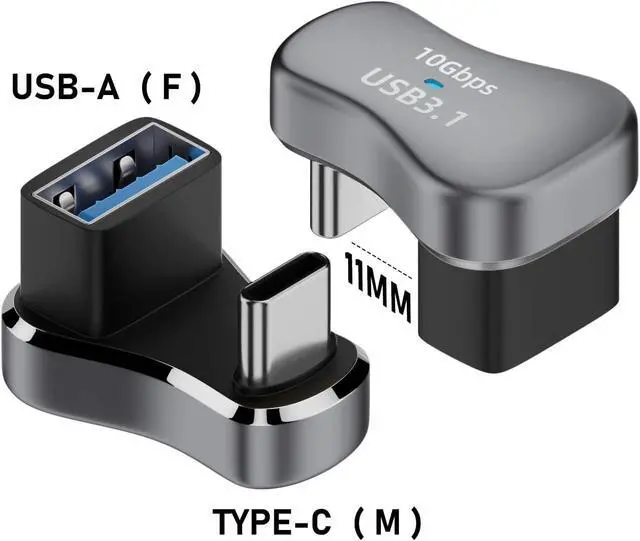 180° U-Shape Design for Clutter-Free Connectivity This U-Shape USB 3.1 to USB C Adapter features a compact 180-degree angled design with a pitch of 11.4 mm ( 0.44 in) ensuring a space-saving fit for tight setups. Perfect for gaming consoles laptops and phones without blocking nearby ports. Ultra-Fast 10Gbps Data Transfer The USB 3.1 male to Type C female U-shape converter delivers 10Gbps high-speed data transfer making it ideal for quickly syncing large files videos or game data between devices with no lag. 240W High-Power Charging Support Designed for fast charging this USB C to USB 3.1 U Shaped Angle Adapter supports up to 140W power delivery ensuring rapid charging for smartphones tablets and gaming devices like the Nintendo Switch.