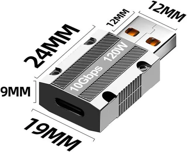 Note: The USB A revolving USB-C female adapter only supports single-sided 10Gbps high-speed transmission while the TYPE C has two side speeds of USB 3.0 and USB 2.0 respectively?? 120W PD