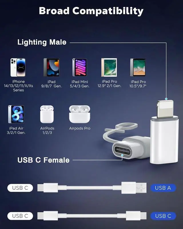 You Will Get: USB C Female to Lightning Male Adapter × 2 Anti-Lost Lanyard × 2.