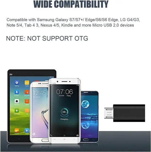 Compatibility: Compatible with Galaxy S7/S7+/ Edge/S6/S6 Edge LG G4/G3 Note 5/4 Tab 4 3 Nexus 4/5 Kindle and more Micro USB 2.0 devices.