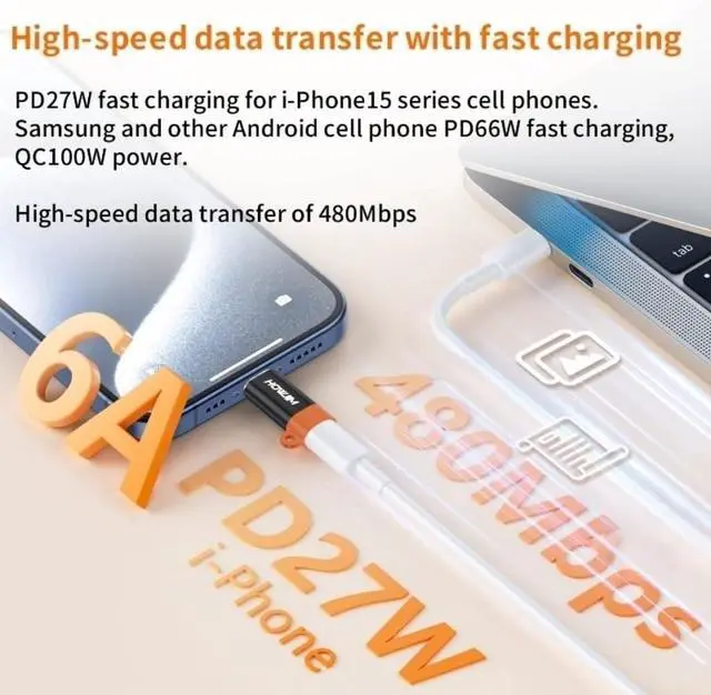 Data Transfer: Light-ning to usb c adapter supports fast charging power PD27W 66W QC100W output 20V 3.0A voltage current 480 Mbps data transfer. Built-in 56K resistor provides stable charging and transmission for charging your devicesLost-Proof
