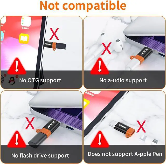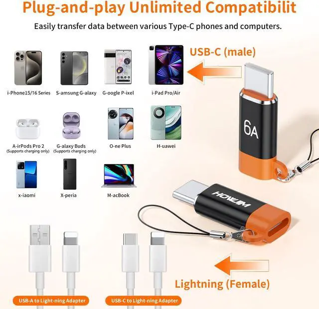 Notes: USB-C to Light-ning adapter only supports charging and data transfer functions. It does not support OTG video and a udio functions headphones mouse keyboard flash drive card reader printer microphone or other device connectionsWide compatibility: This 4 pack light-ning female to usb c male adapter is compatible with Phone 15 16 17 series Pad Pro X-peria P-ixel G-alaxy other smartphones tablets laptops and other devices with Type-C connector Compatible making connection easy and convenient