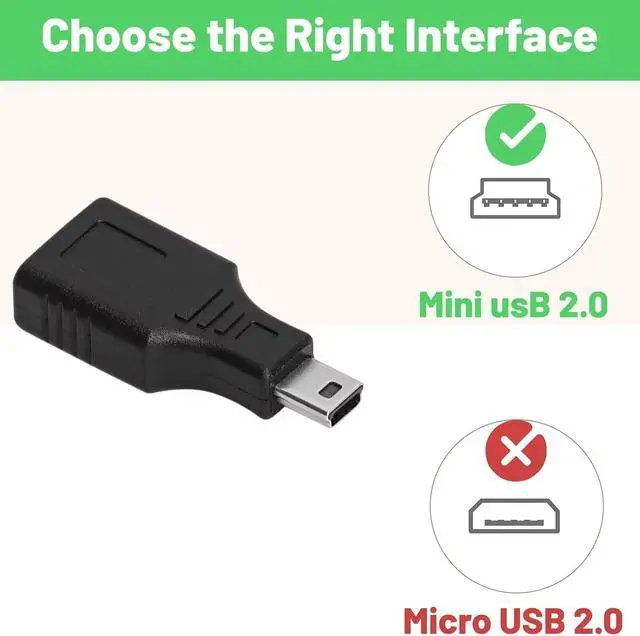 Connector Type: USB Type A Female to Mini USB 5-Pin Type B Male adapter not compatible with micro USB & Type C adapter. Before purchasing please confirm! Use to convert any USB Type A male plug into a Mini USB 5-Pin Type BUniversal Black USB 5 Pin Adapter features molded construction provides durabilityUSB to 5 Pin USB Converter allows you to easily convert existing cables to your needsPackage