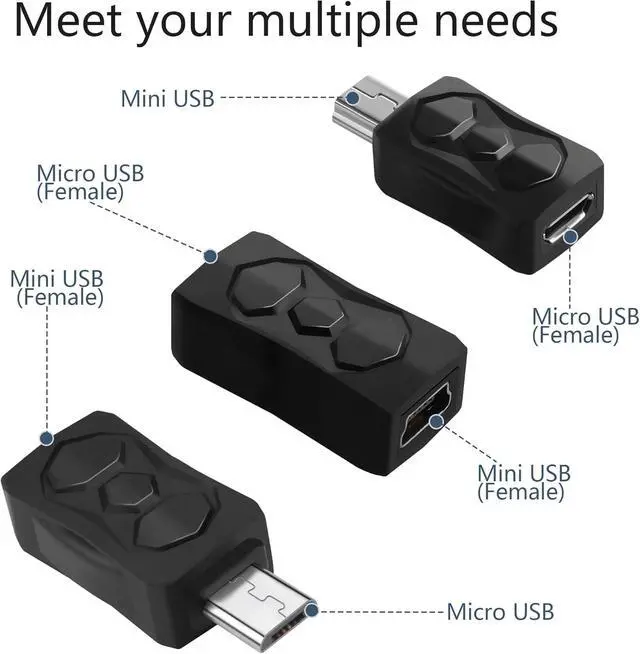 3PCS Micro USB to Mini USB Adapter Micro USB Male to Mini USB 2.0 Female Converter Support 5V/2ACharge & 480MbpsData Sync for MP3 Player Dash Cam Digital Camera(Micro to Mini)