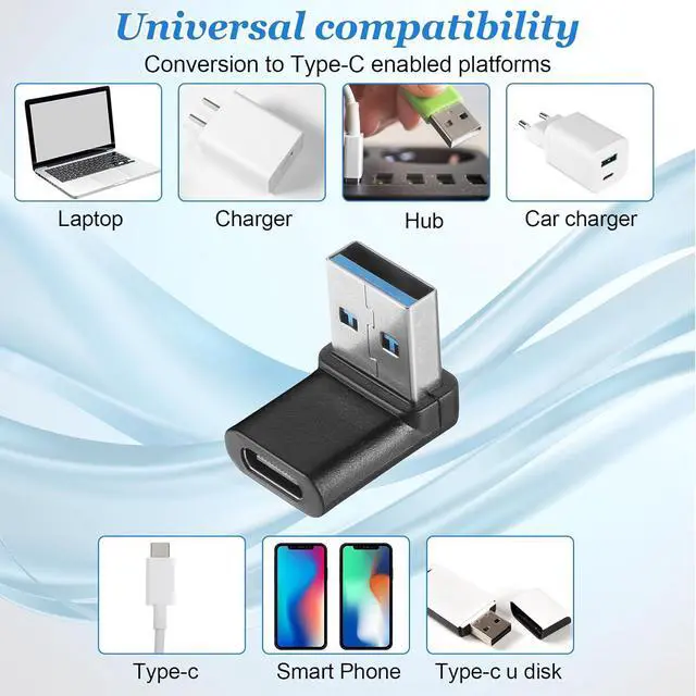 Right-Angle Design: The USB A to USB C converter features a 90-degree right-angle design designed to protect your device's USB connector and cable from potential damage. This thoughtful design not only extends the life of your device but also ensures a reliable connection every time you plug it in. Say goodbye to cable frays and port damage and enjoy this innovative solution.