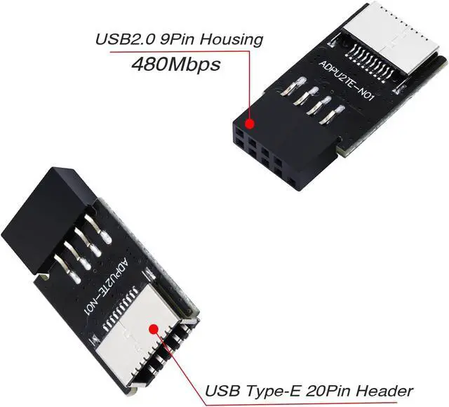 USB 2.0 9-Pin to Type-C Front Panel Type-E 20-Pin Adapter Facilitating easy connections for devices with a Type-C interface. Vertical Transmission Compact Minimal Interference Stable Signal Strong Interference Resistance. This adapter serves as a converter transforming the available USB 2.0 header on your motherboard into a USB 3.1 header; the transmission speed is dependent on the capability of the 9-pin interface. Effortless installation simply plug and play no additional accessories required. A motherboard-compatible converter it works seamlessly with all major brand motherboards featuring USB 2.0 interfaces compatible with both Windows and Linux systems.