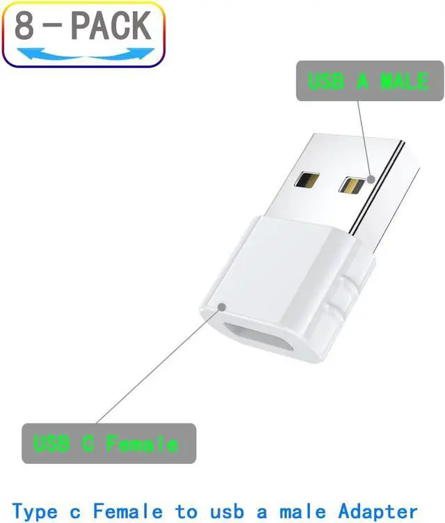 Plug and Play: With our usb a to c adapter you can turn your legacy devices like charger power bank car charger computer laptop usb hub smart TV and more into a USB-C enabled platform. Pack of 8 can convert the ports of all your devices at the same time.