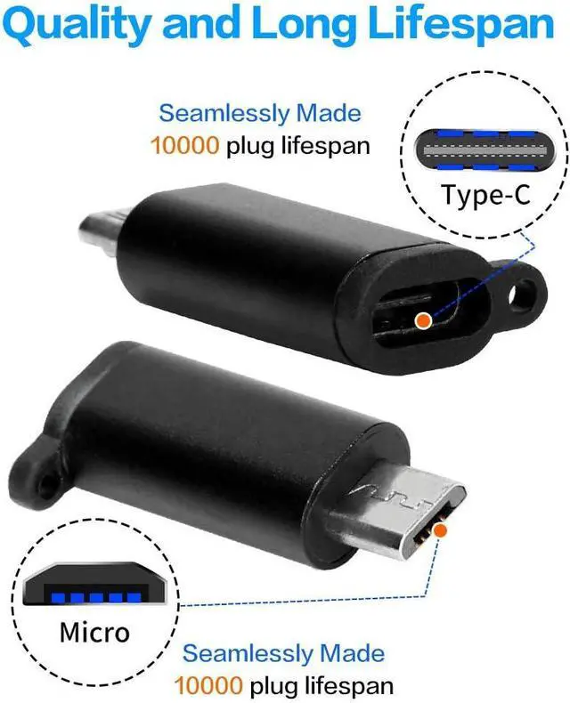 4 x Micro-USB Male to Type-C Female AdaptersFast Charging & Fast Data Sync Transfer 2-in-1Plug & Play No APP Sofrware RequiresAluminum Alloy Metal Shell for Long Term Uses