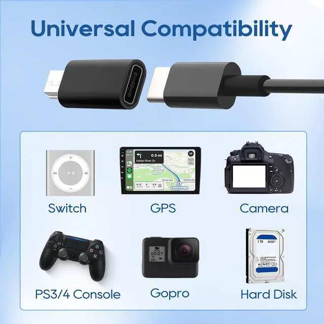 Compatibility: This USB c to mini USB adapter is compatible with GoPro Hero HD Hero 3+ PS3 controller Astro A40/50 MP3 players Canon digital cameras Garmin GPS receivers Zoom Mics and Dash Cams. Perfect for any device using a Mini USB (5-pin) interfaceCompact &