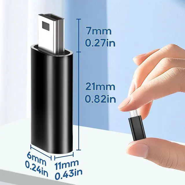Use: Comes with 2 pieces of black USB c to USB mini adapter ready to use right out of the boxno software or driver needed. Simply plug the USB c to mini USB connector into your Type-C cable for instant charging. We hope we could make your life easier and more efficient with mini usb to usb-c adapterBrand names and/or trademarks are used here only for product description or identification of devices and/or device types. Errors reserved