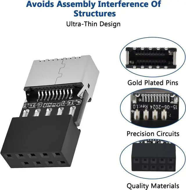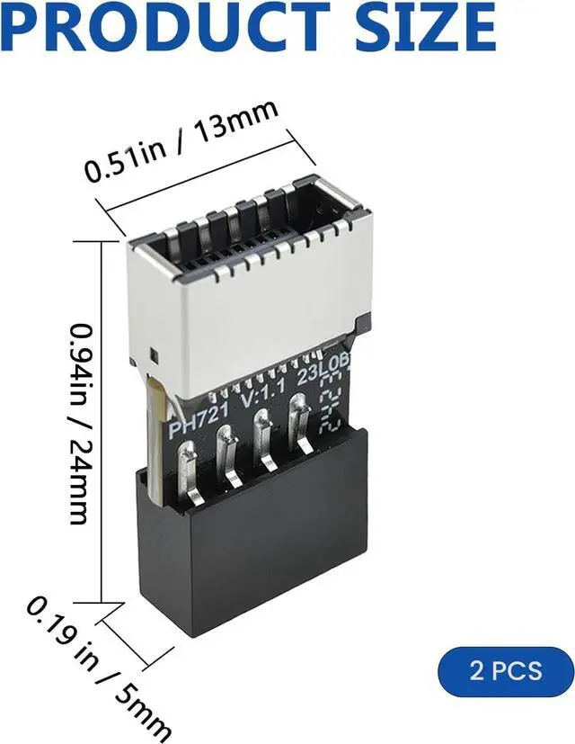 It is also compatible with both Windows and Linux operating systems???????? -?????? -???????? This USB 2.0 to USB 3.2 Gen 1 header adapter is ready to use without needing drivers making it perfect for upgrading internal USB connections with easy installation and use???????????????????? 13×24×8mm / 0.51 × 0.94 × 0.31 in (L×W×H). With an ultra-slim 8mm design this USB 3.2 Gen 1 to USB 3.2 Gen 2 header adapter prevents assembly interference caused by motherboard connector positions or internal case structures???????????????????????????? 2pcs USB 9Pin to USB 3.1 Type-E Header Adapter