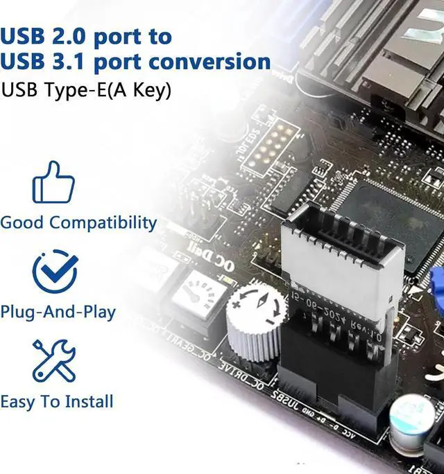 ???????????????? By insert our USB front panel adapter for motherboards without a Type-E connector to achieve full USB 3.1 / 3.2 Type-C (20-pin) A-key motherboard connector compatibility. This adapter converts an available USB 2.0 port to a USB 3.1 port suitable for computer cases with USB-C front panels?????????????????????????? This 9 pin male to usb 3.1 type-e female converter is compatible with motherboards and works seamlessly with all mainstream brands featuring USB 2.0 interfaces.