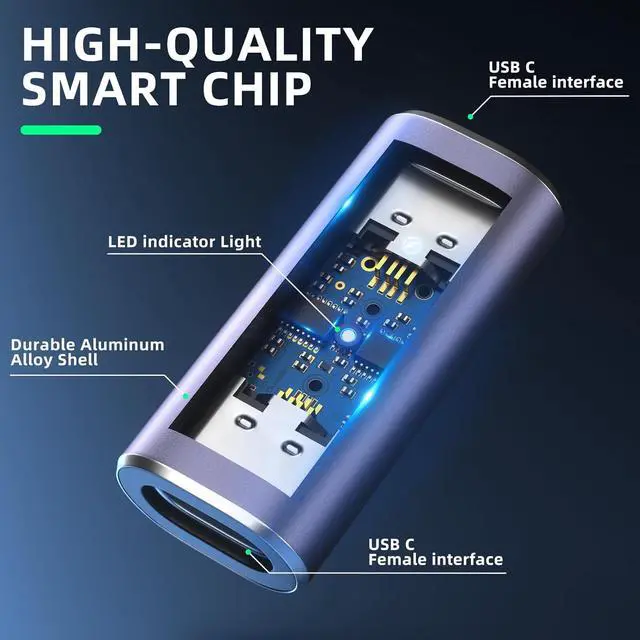 240W PD Fast Charging & LED Function: This USB C female to female adapter will work up to 240W and totally provide the amount of power to satisfy your requirement of Macbook or other USB C device. It can automatically adjust the power output parameters according to your device need. The LED indicator light let you know that the connection is good. USB C Female to Female Design This is a USB C coupler which means that only USBC 4 male cables or devices can be connected on both sides.