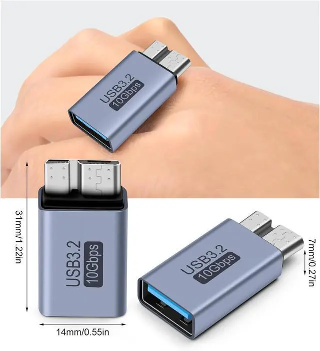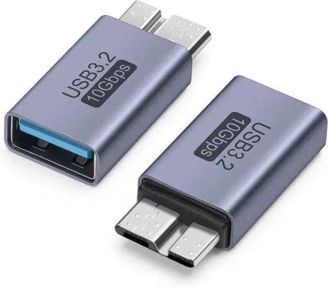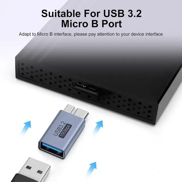 USB to Micro B AdapterConnect external hard disk SSD drive to your phone or tablet for data transfer charge devices with USB 3.0 Micro B port. 10GbpsUSB external drive connector transfers up to 10Gbps and supports 5V/ 1.5A charging (USB to Micro B only). CompatibilityCompatible with FreeAgent Western Digital (WD) My Passport Elements Hard Drives Portable USB 3.1 External Hard Drives Toshiba Canvio Galaxy S5 Galaxy Note 3 Galaxy Note Pro and more. Safe & DurableAdopted aluminum alloy shell good heat dissipation. Can be left in the USB 3.0 Micro port to avoid wear and tear on the device interface due to repeated unplugging.
