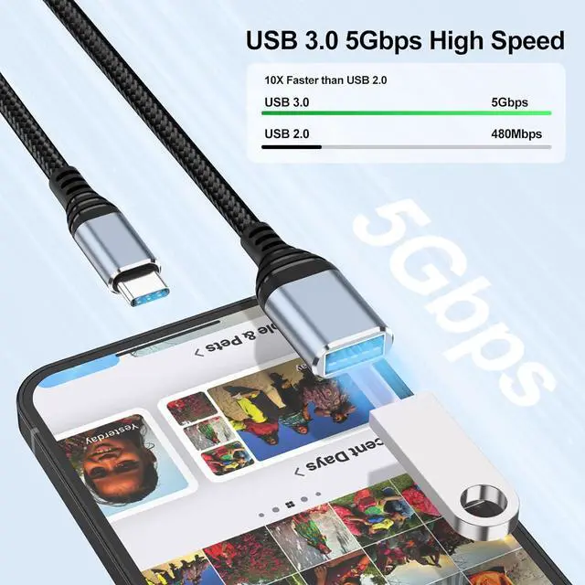 On-The-Go USB OTG ExpansionThis adapter converts USB-C (Thunderbolt 3) to USB 3.0 supporting external hard drives USB thumb drives keyboards mice hubs and other OTG-enabled peripherals. It allows smartphones tablets and laptops to read data and transfer files quickly and easily. USB 3.0 5Gbps Super Speed Data TransferWith up to 5Gbps transfer speed (10x faster than USB 2.0 ) it efficiently moves HD movies large documents and music to your USB-C devices in secondsideal for on-the-go use. Plug & PlayInstant Connectivity No drivers to download or install. Connect webcams mice Bluetooth receivers and keyboards effortlessly with a seamless user experience that gets you up and running in seconds.