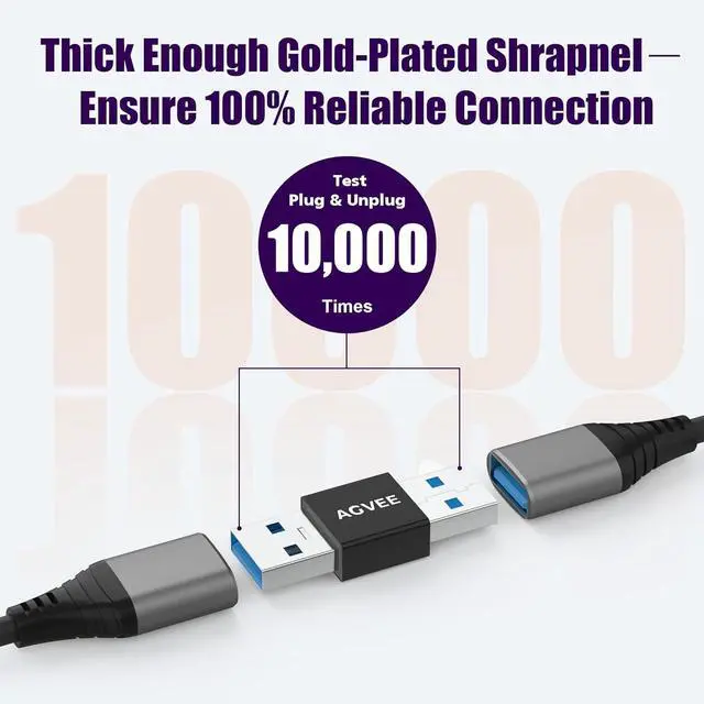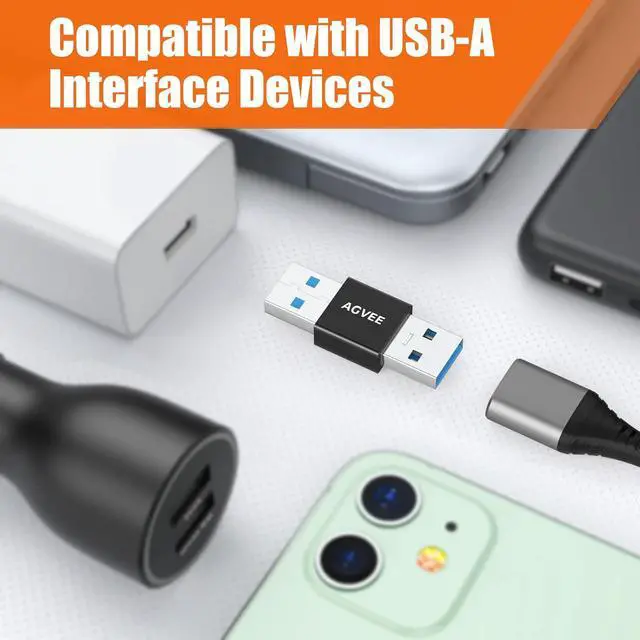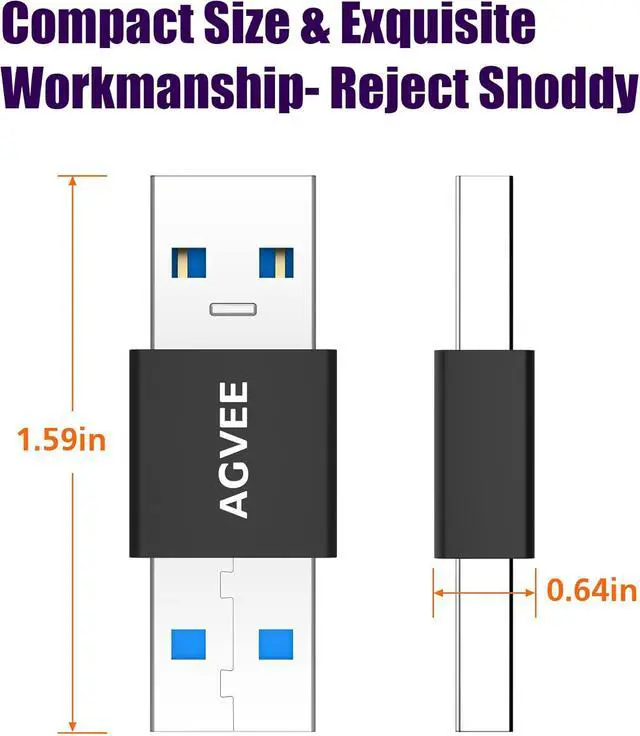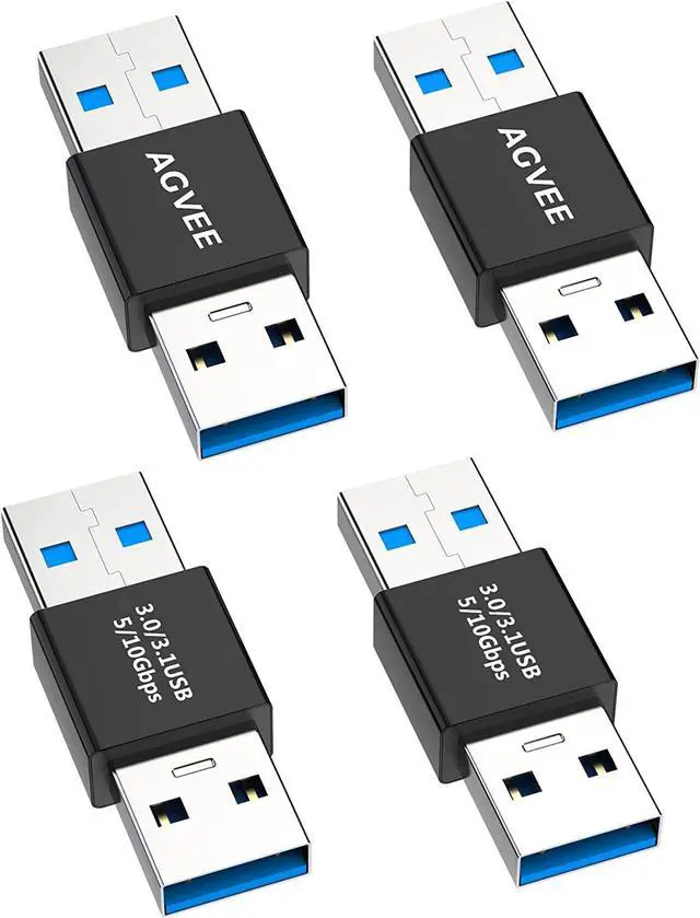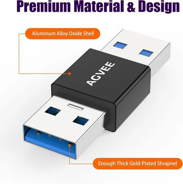 • AGVEE 4 Pack USB-A 3.0 Male to USB-A Male Bidirectional Adapter USB 3.2 Gen 1 Coupler Extender Extension Converter Connector Black