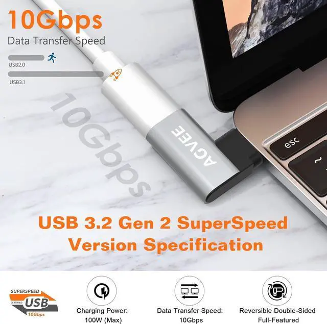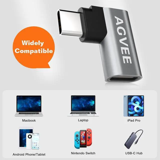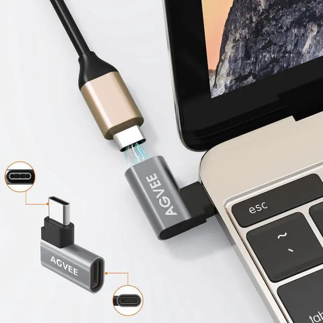 ? [90 Degree Full Function Data Transmission] These 90 degree adapters allow the cable to have a suitable extension direction which can extend the life of the device and the charging cable and save space. Support charging & data transmission compaitble with TB3 ports.? [Exquisite Workmanship] Strict quality inspection standards fine appearance details refuse to be shoddy.? [Knowledge That Only Experts Know] The contact shrapnel is made of high-elastic high-conductivity copper. After 10000 times plug & unplug test the shrapnel contact resistance is still less than 15m this is very important for adapter.