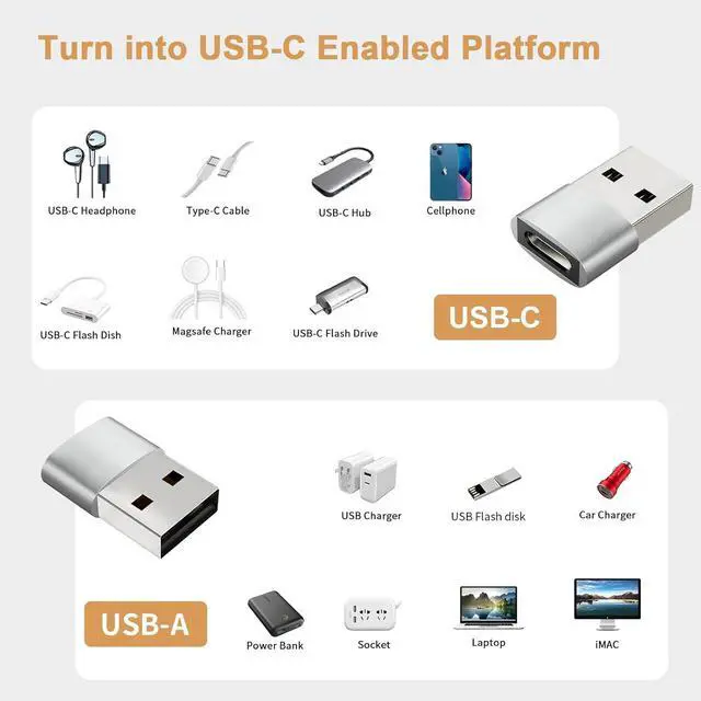 The compact design makes them easy to carry ensuring you have connectivity on the go with a width of 15mm allowing you to plug them in side by side. Easy ConnectionIf you need to connect your USB-C enabled device to devices that only have USB-A ports these USB-A Male to USB-C Female adapters are perfect for you. Just insert the adapter into the USB-A port of your device to easily connect your USB-C accessories to a device that previously lacked the appropriate connection interface. DurabilityThe main components inside these adapters are protected by a strong aluminum alloy casing that can withstand force and maintain a stable connection for a long period of time.