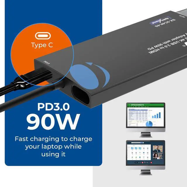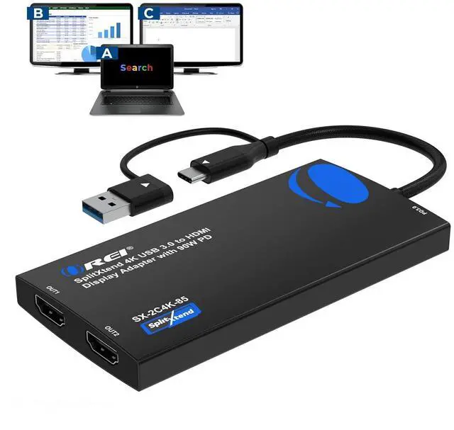 2 IN 1 CABLE: Features a 2-in-1 cable the dual monitor adapter can be easily connected to USB-C USB-A or thunderbolt 3/4 USB 4 devices and then mirror or extend your screen content to greatly improve your work efficiency. PD 3.0 90W Fast charging to charge your laptop while using our SplitXtend Adapter. FULL 1 Year Full Warranty with Lifetime OREI Support.