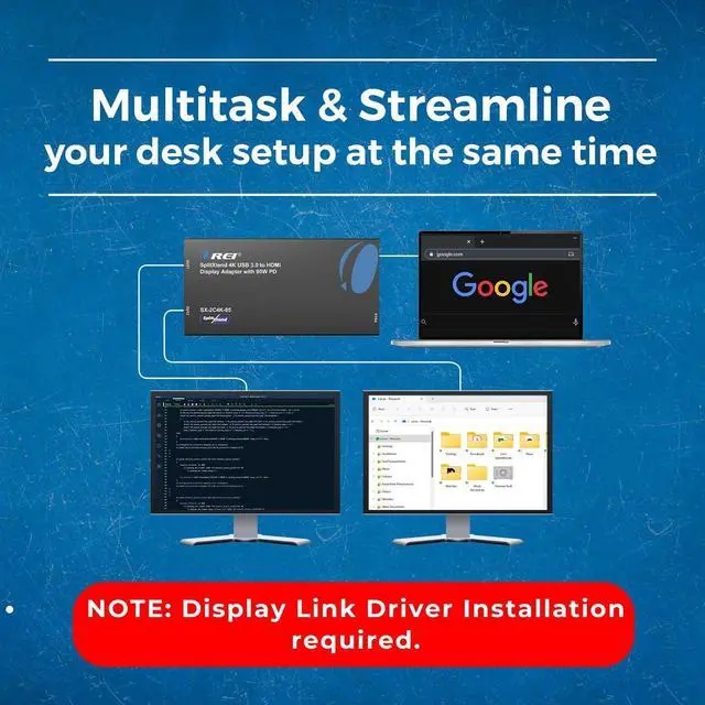 NOTE: This adapter will not work with macOS version 10.13. 4 to 10.13. 6; We recommend users to update to 10.14 or later to ensure compatibility with DisplayLink; Driver required for macOS and Windows; Auto-driver install with ChromeOS. DISPLAY LINK DRIVER INSTALLATION REQUIRED. Ideal for web and productivity software. Not recommended for gaming graphics-intensive or design work. Also it doesn't support playback of HDCP-protected content on sites like Netflix and Hulu. and others This HDMI extender for dual monitors can be easily connected to USB-C USB-A 3.1 or Thunderbolt 3/4 USB 4 devices.