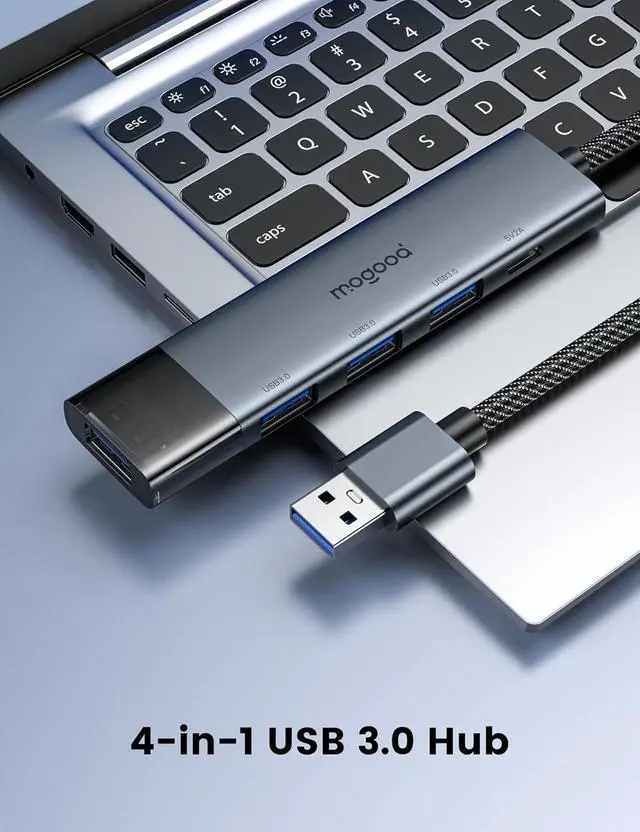 USB 3.0 HubUSB Hub converts one USB port into four USB 3.0 ports and one Type C port Can solve the problem of too few device connection ports(Attention: The Type C port provides 5V voltage for the USB hub to ensure fast and stable data transmission and cannot charge the device). The 100cm cable extension cord makes the use of USB hubs more flexible Make it easy to adapt to various scenarios such as home office outdoor etc and suitable for various devices such as laptops and desktop computers. Ultra high speed data transmission speedUSB 3.0 splitter provides a data transfer speed of up to 5Gbps which is 10 times faster than USB 2.0. It can transfer a high-definition movie or large file in just a few seconds. Transfer a high definition movie or large file in just a few seconds. Help you bid farewell to the long and boring waiting time. It is backward compatible with USB 2.0 / 1.1S afe and DurableUSB hub is equipped with advanced chips and reliable thermal design to ensure the security of your devices and data. The lightweight aluminum alloy shell is smooth and durable making it easy to handle daily collisions. The tightly woven cable can withstand countless pulls and twistsPlug and PlayMulti port USB adapters do not require drivers. Support simultaneous operation of four ports to improve work efficiency.