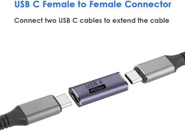 Cable Extender Connector: Conveniently extend your USB C cable for easier access and enhanced flexibility in your workspace or entertainment setup. This USB C extender connector is made of premium alloy materials this adapter is designed for durability and long-lasting use withstanding daily wear and tear. Whether you're expanding your workspace or need a reliable connection on the go our USB C Female to USB C Female Adapter is the perfect addition to your tech accessories. Enhance your connectivity with this compact easy-to-use adapter and experience the convenience of high-speed data transfer and efficient charging.