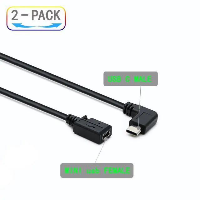 File transfer rate up to 480Mbps for USB 2.0 devices. 25cm 90 degree Right Angled USB 3.1 Type C Male to Mini 5-Pin B USB feMale Data Sygn and Charging Cable. Plug and play reversible Type-C connector can be plugged and unplugged easily without checking its orientation.