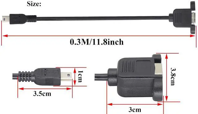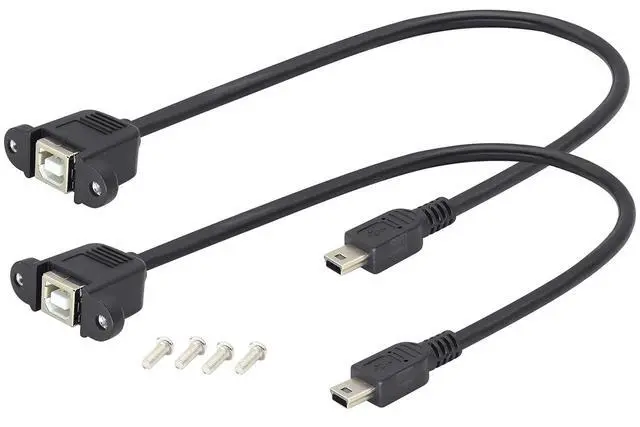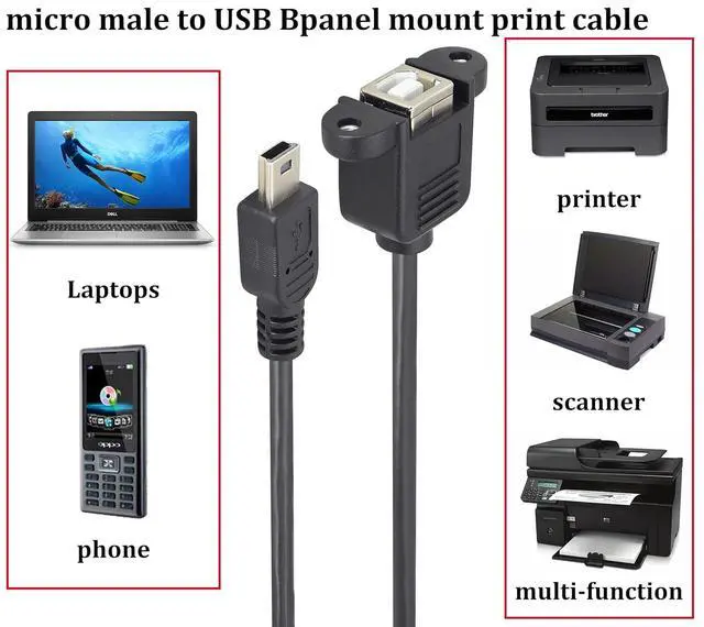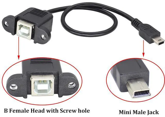 cable port : black plastic supports 0-30V Color: Black[Application field]: Support Win982000XPVistaWin7 Mac OS V9.0 or later. 3.5 -inch mobile hard disk laser printers paper printers inkjet printers and other equipment through the cable can easily connected to the computer equipment data communication file transfer printing etc.[Plug and play]:no need to install drivers suitable for square interfaces The data transfer speed of this cable is up to 480 Mbps hight speed for USB 2.0 devices[High Speed Transfer]:High Speed Transfer This USB 2.0 B Male to Type B Female Left Angle Print and Data Transfer up to 480 Mbps for USB 2.0 devices and this USB to printer converter is backwards compliant with full-speed USB 1.1 (12 Mbps) and low-speed USB 1.0 (1.5 Mbps).[What will you get?]: 2 *black Mini USB Male to USB Type B 2.0 Female Extension Panel Mount Cable with Screws Cable length :30cm/1ft