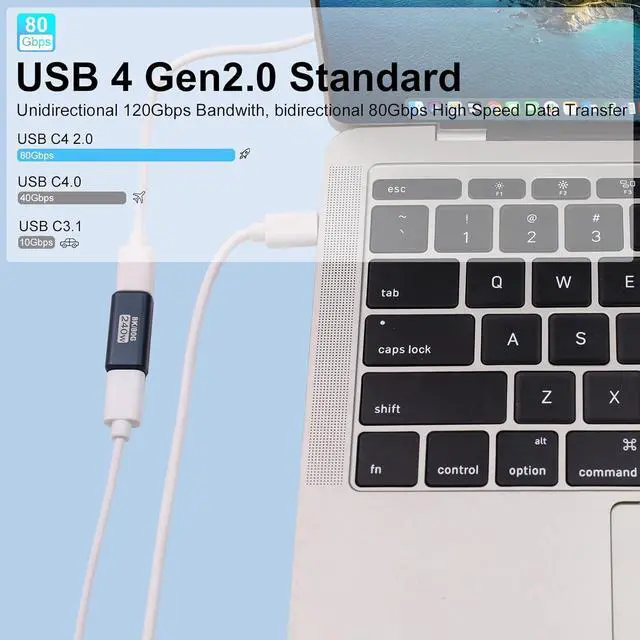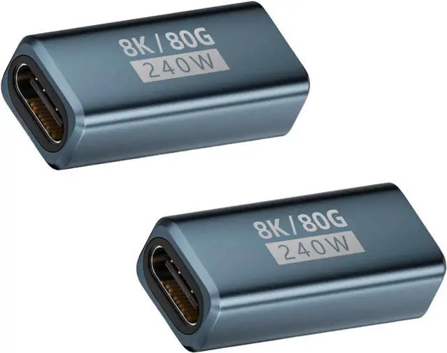 USB C Extender AdapterThis usb c female to female adapter is to extend the length of your USB-C cable by joining two shorter cables for fast charging data transfer or seamless video and audio pass-through. Perfect for when a single cable is not enough. USB 4.0 PerformanceSupports USB4 (80Gbps) and Thunderbolt 4/5 protocols ensuring zero signal degradation. Delivers 240W PD 3.1 charging (48V/5A) 8K@60Hz/4K@144Hz video output and backward compatibility with Thunderbolt 3 devices. Thunderbolt 5 Transfer Rate 80GbpsThis usb c angle adapter can support 80Gbps of bidirectional data transfer 120Gbps of video bandwidth undirectional. And this thunderbolt 5 cable connector is perfect for professionals gamers and anyone who demands fast and reliable data transfer.