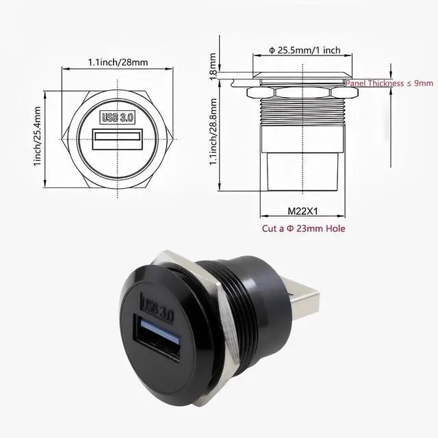 Easy Mounting: Designed for easy installation this USB 3.0 panel mount adapter comes with an M24 x 1.5 nut. Simply cut a 25mm hole in your mounting surface insert the adapter and secure it with the nut for a robust and stable connection.