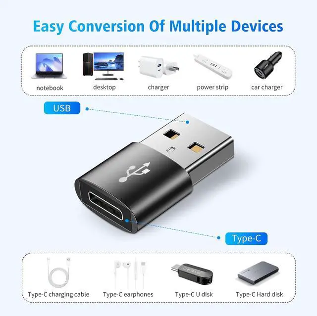 (Seller's Reminder) Barring use with Webcams these adapters cannot be used for video exportation meaning these adapters cannot work with cables adapters docking stations with HDMI DisplayPort or any other interfaces for video output. Charging and duplicating files of any kind use with USB-C earphones wireless network adapters SD card adapters are available with these adapters. 16 Charger/16 C Adapter/16 USB C accessories. (Something Old Something New) Turn the USB-A port of any of your devices into a USB-C one with this pack of adapters and give them the necessary interface to function in the era where USB-C connections prevail.