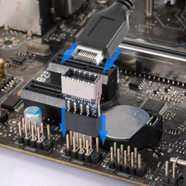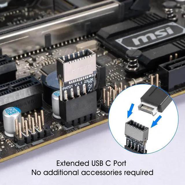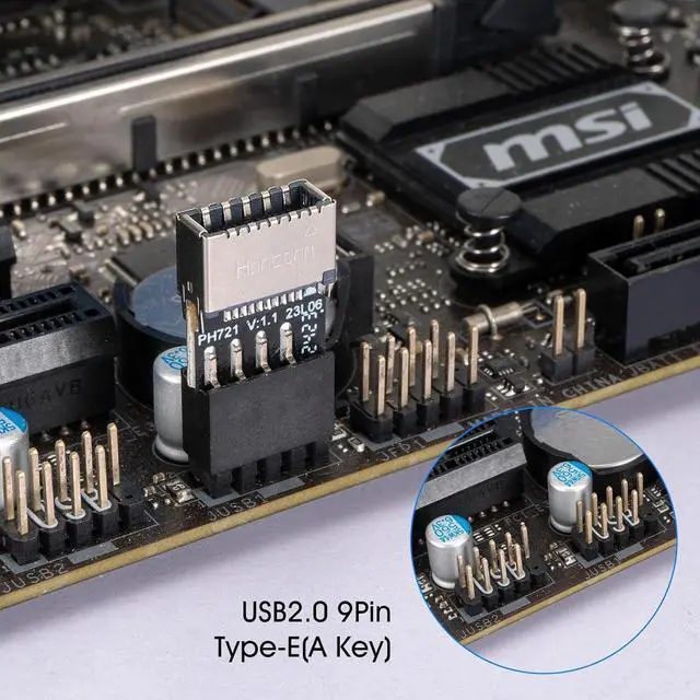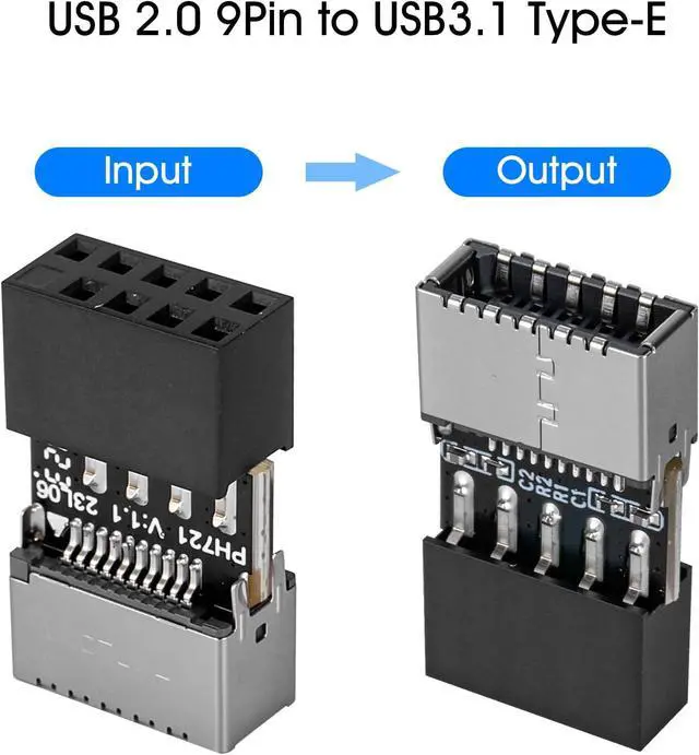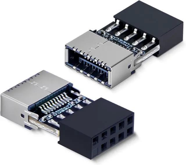 USB 2.0 to USB 3.2 Adapter [2-Pack] Upgrade your old motherboard with our 2-pack USB 2.0 to USB 3.2 Gen 1 header adapter. Extend USB-C functionality to your front panel without replacing your motherboard. Fully compatible with USB 3.1 / 3.2 Type-C (20-Pin) A-Key headers. Slim & 180-Degree Design Designed with a compact 180-degree angled connector these adapters fit easily into tight spaces without interfering with your motherboard or PC case. Their slim profile ensures seamless installation in any setup. Plug & Play Installation No drivers or software neededjust plug the adapter into your motherboards USB 2.0 9Pin header and enjoy instant USB-C connectivity.