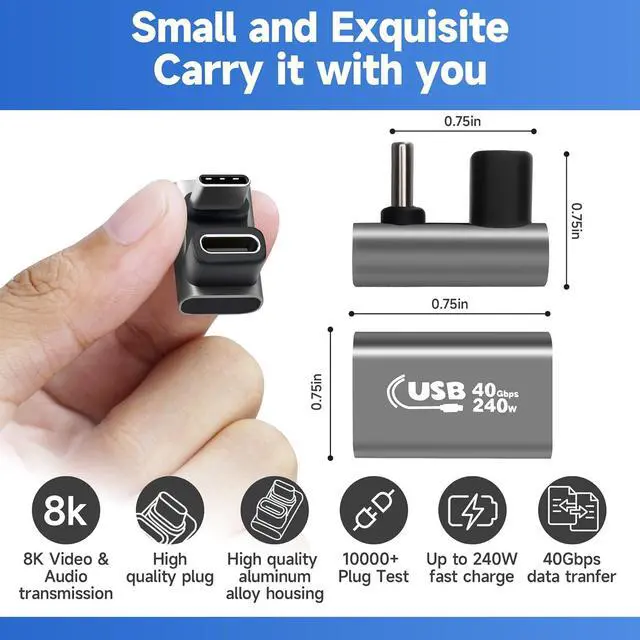 DP Alt mode)High quality materials: The USB4 USB C male and female adapters are made of high-quality connectors that are more corrosion-resistant. The U-shaped design is convenient for bending and use and the sturdy aluminum casing provides better heat dissipation. Small in size it is very convenient to carry during travel and business trips.