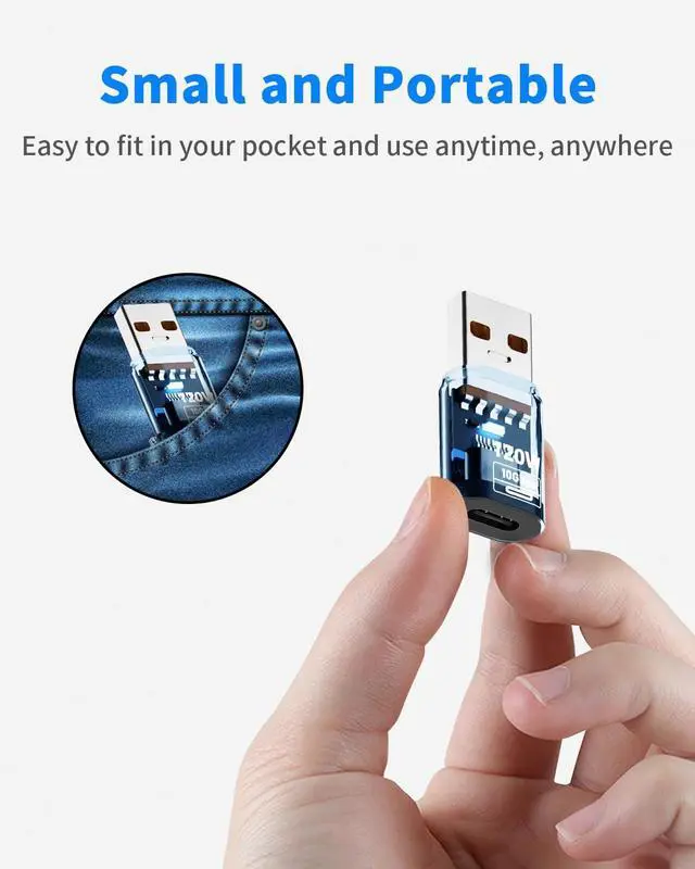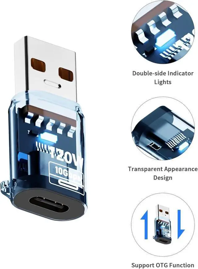 10Gbps Data TransmissionUSB C Female to USB Male Adapter can support USB 3.2 Gen 2 data transmission speed up to 10Gbps realizing stable and efficient data transmission and both sides can reach the maximum speed. 120W Fast Charging10Gbps USB-C to USB-A Adapter supports fast charging up to 120W 20V 5A. Laptop charging is support. MagSafe charger is not supported. Wide compatibilityUSB to USB C converter can connect the USB devices such as external hard disk keyboard mouse game control USB memory and card reader can be connected to smart phones or tablet computers with C-terminals so make full use of USB peripheral devices.