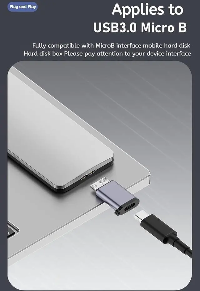 WITRN Package listing: 1 x Micro USB B to USB C Male adapter. 1 x Micro USB B to USB C Female adapter. 1 x Micro USB B to USB A Male adapter. 1 x Micro USB B to USB A Female adapter. Mini size plug and play easy to carry sturdy aluminum shell protection. Micro B 3.0 to USB 3.1 Type A/C adapter with 5/10Gbps ultra-high transfer rate and 3A charging current ultra-high performance. Different computers and USB devices are slightly different and the actual usage shall prevail. Micro B to USB 3.1 A/C adapter ---Play and Plug Mini Size Design Easy to Carry with Solid & Secure Connection. It is well fit snugly on both ends and offers a firm connection between the portable external hard drive and your laptop which greatly ensures stable and fast data transmission. This Micro B to USB A/C adapter supports USB 3.1 devices (10Gbps) USB 3.0 devices (5Gbps) and backward compatible with USB 2.0 (480Mbps) and USB 1.1 (12Mbps) specifications. This External Hard Drive USB A/C Connector can easily expand the storage space to your laptop via attaching a portable USB 3.0 hard drive edit the videos/photos/documents on your hard drive quickly.