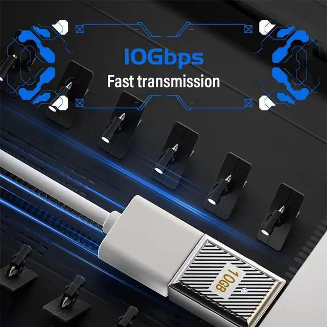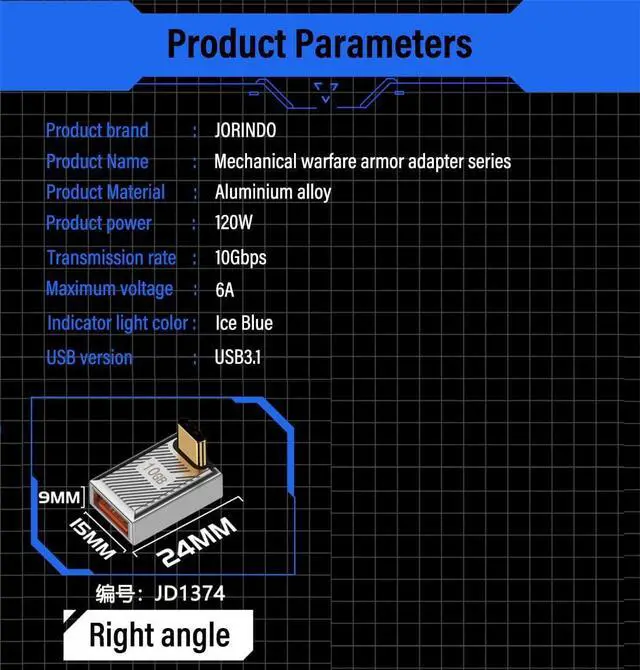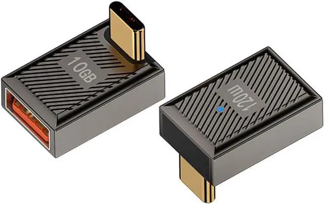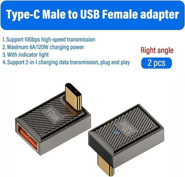 Product namePositive Bend USB-C to USB-A Adapter with LED indicatorProduct powerThe USB-C to USB-A adapter packs a powerful punch with 120W/6A power capability supports 10Gbps high-speed transmission ensuring fast and stable charging. Product materialThe sleek design features aluminum alloy materals and precision insert molding small volume and light weight. It's plug-and-play and it even comes with a cool ice blue LED indicator. The 90 degree positive bend design keeps the cable routing close to the tablet laptop or Wall Charger and avoids damage to the cable due to bending. Product designUSB C Male to USB A Female OTG Adapter is compatible with various USB C devices and USB A devices converts USB-C port to USB-A port connects to various USB-A devices including external hard drives cell phones mice printers and more.