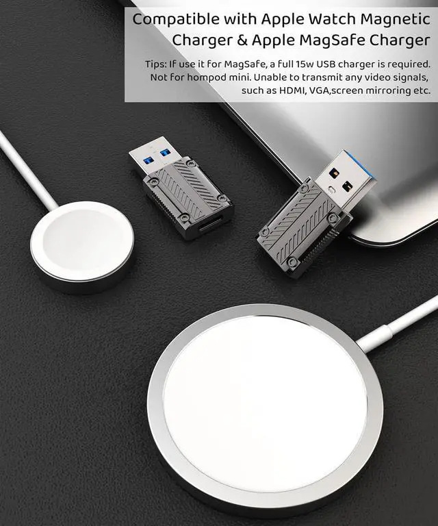 Wide Range of Compatibility: Our Type-c to USB Type-A adapter is Compatible with Watch series 7/8/9/Ultra/SE MagSafe charger (requires a 15W+ charger) iPhone 15 14 13 12 pro max mioni iPad Airpods USB chargers car chargers laptops computers and more devices with USB-C or USB ports.